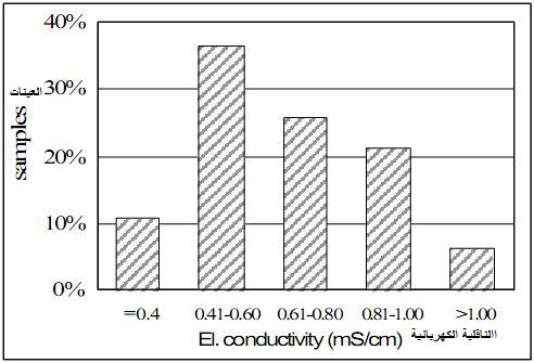 الشكل (2): توزّع الـ66 عينة عسل تبعاً لقيم الناقلية الكهربائية.